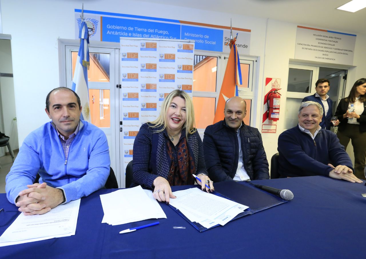 La gobernadora Rosana Bertone encabezó este lunes la firma del contrato para la construcción de la Planta de Tratamiento de Efluentes Cloacales en Río Grande. La obra beneficiará a más de 50 mil familias de la zona.