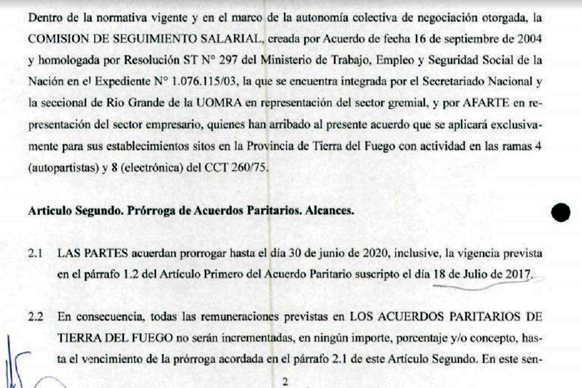 El ministerio de Trabajo homologó el acta acuerdo firmada entre AFARTE y UOM que congela las paritarias hasta el año 2020. De esta manera, se confirmó que el sector de trabajadores industriales no percibirá aumento salarial alguno hasta ese año.