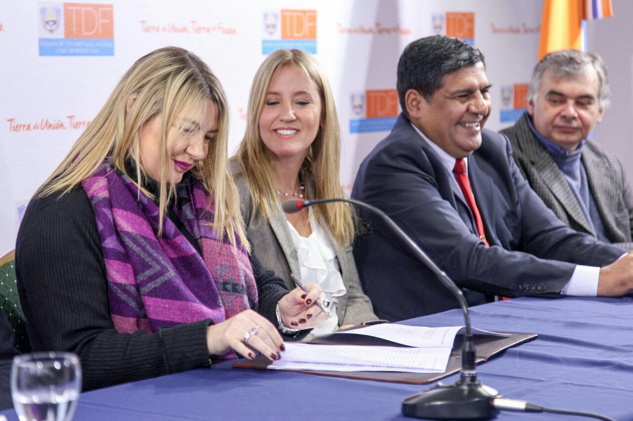 La Gobernadora encabezó la firma del convenio entre Laboratorio del Fin del Mundo y la firma Bristol Myers Squibb para la transferencia de tecnología para producir en Tierra del Fuego un medicamento para tratar el VIH Sida.