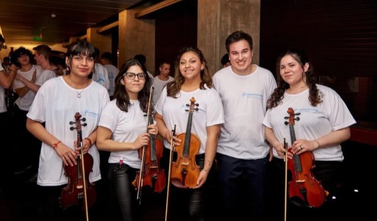 Se trata de las violinistas Araceli González, Nayla Llanos, Candela Santamaría, Gloriana Pereyra y el contrabajista Tomas Pérez, quienes son integrantes de la Orquesta Municipal Kayén. Se presentaron en el Centro Cultural Kirchner, en un concierto que nucleó a 150 jóvenes músicos, referentes, multiplicadores y maestros de todo el país.