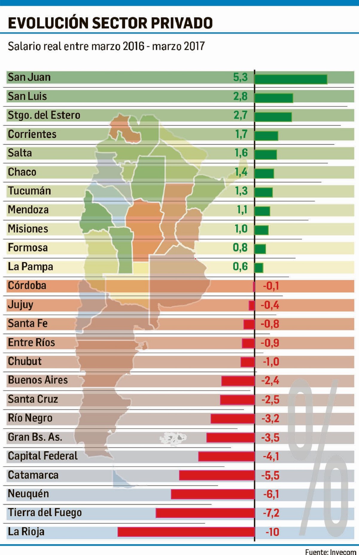 El diario Ámbito publicó hoy un informe de la consultora Invenómica donde registra la recuperación de doce distritos, en el que no está incluida Tierra del Fuego. El mismo matutino también publicó un lapidario informe sobre la situación socioeconómica de la provincia, con un tinte político antigubernamental.