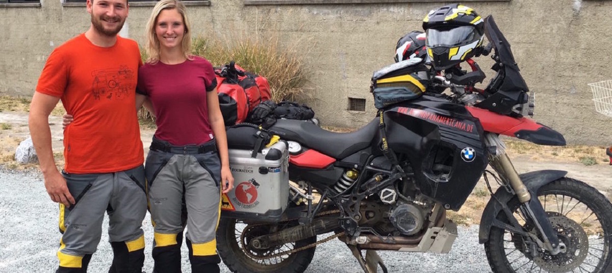 Se trata de una pareja de europeos que han iniciado el sueño de su vida a bordo de una motocicleta. Llegaron recientemente a la Región de Coquimbo en Chile, como parte de su travesía. Sueñan con llegar a Ushuaia.