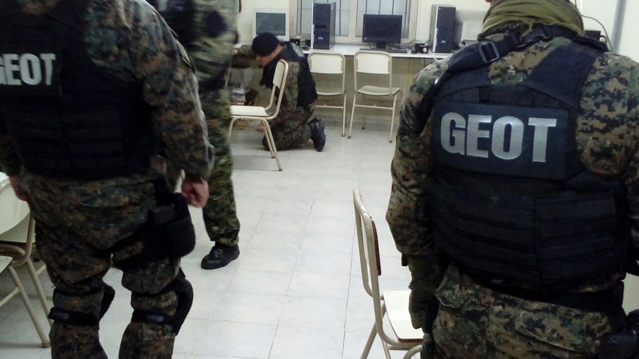 El juez Daniel Cesari Hernández, junto a personal policial, de bomberos, la brigada de Explosivos y de Servicios Especiales, encabezó un importante operativo en el Juvenil Instituto Fueguino –JIF- a raíz de amenazas con mensajes encriptados de que “algo iba a suceder” en este colegio secundario de Río Grande.