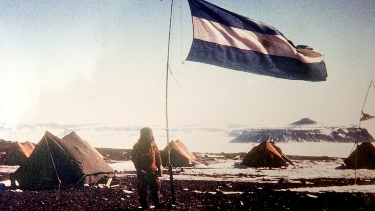 Juan Carlos Luján, suboficial auxiliar durante la epopeya de 1969, con una caña de colihue, improvisó el mástil donde flameó por primera vez el Pabellón nacional.
