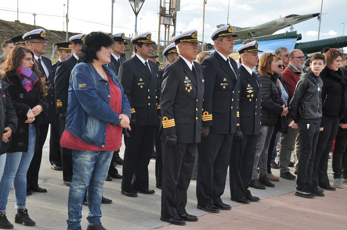 La ceremonia fue encabezada por Pablo Fernández y Rafael Enriquez, hermanos de dos tripulantes desaparecidos; la concejal Miriam ‘Laly’ Mora, el Comandante de la Fuerza de Infantería de Marina Austral, Capitán de Navío de IM Gabriel Terza; el Segundo Comandante, Capitán de Fragata de IM Bernabé Cardozo; el Comandante del BIM 5 Ec Capitán de Fragata de IM Román Gustavo Francisco Morelli; el Comandante del Destacamento Naval Río Grande, Capitán de Corbeta de IM Guillermo Salinas; el titular de la Seccional de la UOM Río Grande, (Diputado Nacional MC) Oscar Martínez; veteranos de Guerra de Malvinas y público en general.