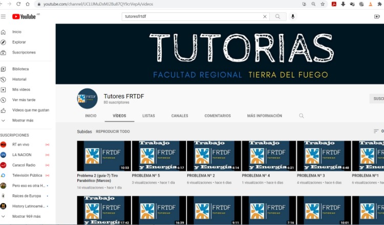 El canal de las tutorías es: www.youtube.com/channel/UCLUMuDxMJ2Bu87QY9crVepA