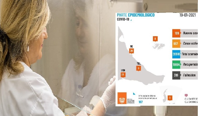 Se reportó un fallecimiento y suman 319 el total de muertes en toda la provincia. Ayer se registraron 109 nuevos casos positivos de coronavirus sumando 20980 en toda la isla. De esos casos nuevos casos, 28 corresponden a Río Grande y 81 en Ushuaia.