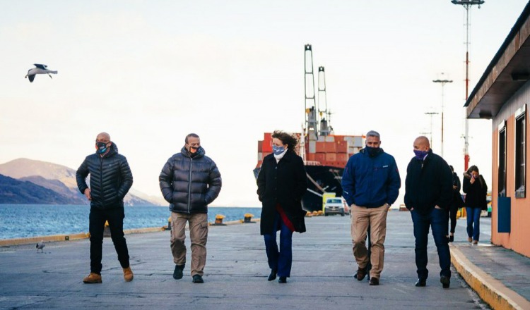 La Presidenta de la Legislatura Provincial, vicegobernadora Mónica Urquiza, junto al legislador Pablo Villegas (MPF) y autoridades portuarias, el Presidente Roberto Murcia y el vicepresidente Miguel Ángel Ramírez, realizaron una recorrida por el Puerto de Ushuaia.