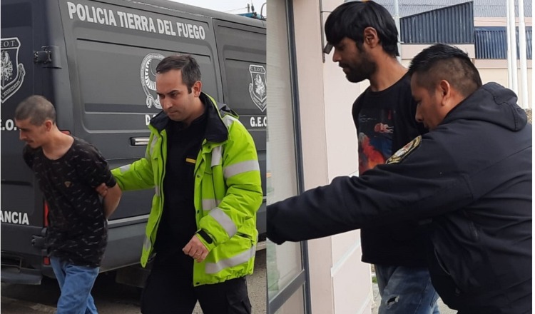 Ayer, en medio de un operativo policial fueron trasladados a los tribunales de Campamento YPF los dos hombres detenidos el domingo pasado, en plena sustracción de unas correas en el barrio San Martín Norte.