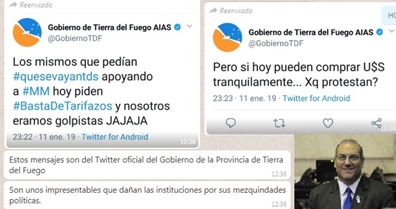 El diputado del PRO difundió capturas de tuits que habían sido falsamente editados en la cuenta oficial de Twitter del Gobierno de la Provincia. Horas después borro los mensajes. El papelón del diputado se da horas antes de la llegada de Macri a la isla.