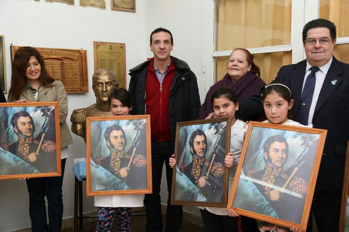 El Gobierno Provincial y la Asociación Sanmartiniana de Ushuaia hicieron entrega -este martes- de 15 cuadros del Libertador San Martín a la Escuela Nº1 "Domingo Faustino Sarmiento" de esta capital.