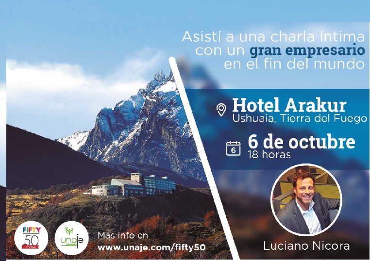 La Unión Argentina de Jóvenes Empresarios llega al fin del mundo con el FIFTY50, un evento para jóvenes emprendedores y empresarios pyme. El encuentro se desarrollara hoy viernes 6 de octubre, a partir de a las 18hs en el Hotel Arakur tendrá lugar una charla íntima con el empresario referente del emprendedorismo argentino, Luciano Nicora.