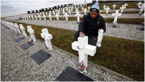 El cementario argentino de Darwin donde estan los cuerpos de los soldados no identificados de la guerra de Malvinas.