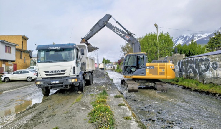 La Subsecretaría de Servicios Públicos continúa desarrollando trabajos de limpieza, remoción de sedimentos y profundización en distintos tramos del cauce, luego de la crecida registrada el domingo pasado.
