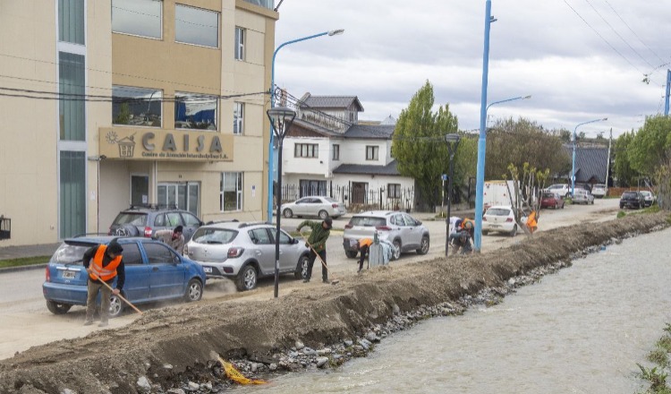 Personal de la Secretaría de Medio Ambiente y Desarrollo Sustentable de la Municipalidad de Ushuaia, y de la empresa Agrotécnica Fueguina, realizó trabajos de limpieza en sectores de la ciudad que fueron afectados por el desborde del arroyo Buena Esperanza.