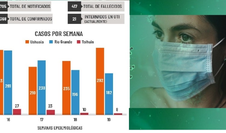 Así lo informó el ministerio de Salud de la provincia. En los últimos 7 días se detectaron 292 casos nuevos en Ushuaia, 182 en Río Grande y 8 en Tolhuin. La provincia suma un total de 27368 casos confirmados y 417 pacientes fallecidos.