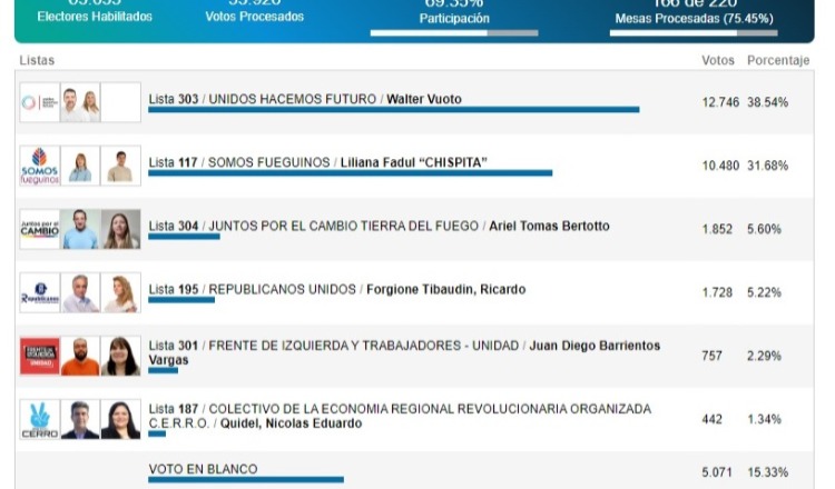Lo cierto es que la fórmula Vuoto-Muñiz Siccardi se impuso sobre la fórmula Fadúl-Garramuño y no dejó dudas sobre la preferencia de la sociedad ushuaiense.