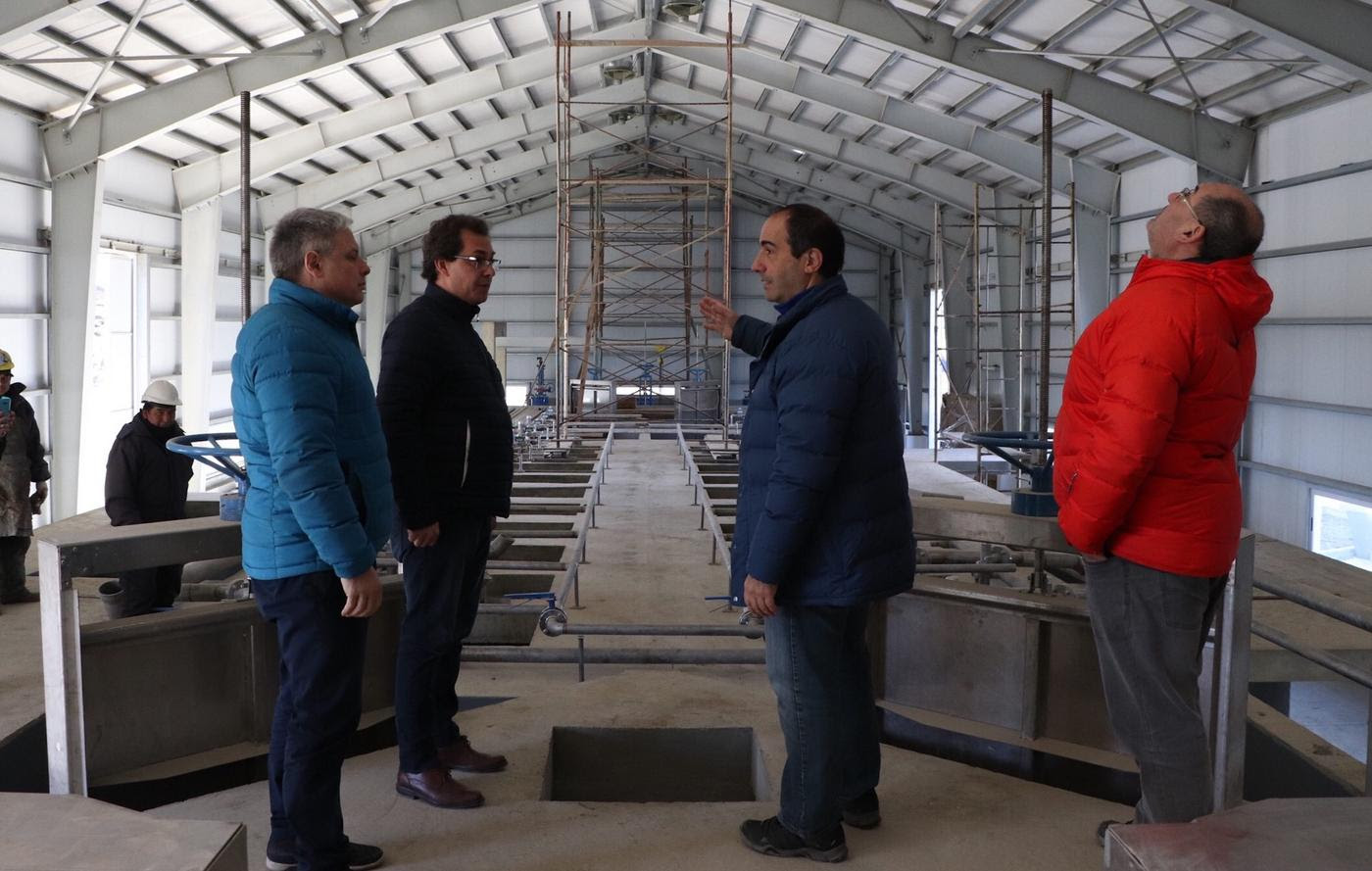 El presidente de la DPOSS, Guillermo Worman, junto al ministro de Obras y Servicios Públicos, Luis Vazquez, recorrió el final de obra de la nueva planta de tratamiento cloacal Bahía Golondrina. Se trata de una obra dimensionada para tener un funcionamiento eficiente hasta el 2045.
