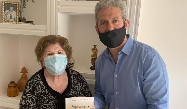 El Dr. Ernesto ‘Nené’ Löffler socializando su nuevo libro con “la más grande”, su mamá Norma Beatriz Valentini.